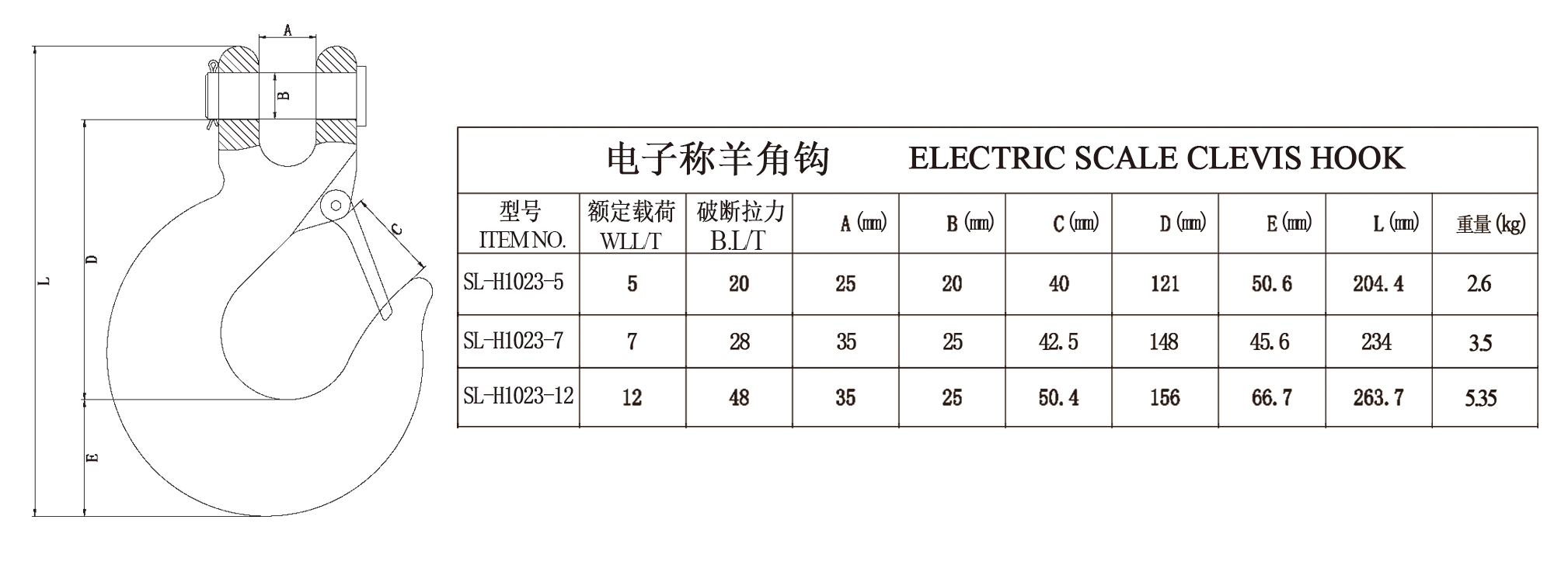 1、特点:高强度优质合金钢模锻。 2、适用于各种电子吊秤的下吊钩。 3、制造检测拉力为额定载荷的2倍。以额定载荷的1.5倍,抽样做20000次的循环疲劳测试。 4、100%进行磁粉探伤。 5、